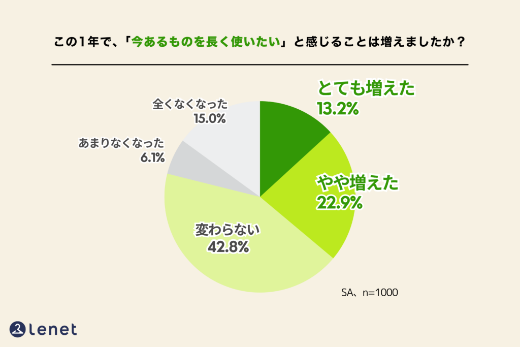 次に、この1年で「今あるものを長く使いたい」と感じることが増えたかを尋ねました。